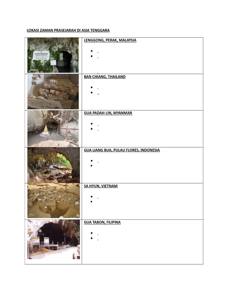 Lokasi zaman prasejarah di malaysia. Di manakah lokasi penempatan masyarakat zaman logam di malaysia? Zaman prasejarah di dunia biasanya dibahagikan kepada empat iaitu zaman paleolitik, zaman mesolitik, zaman neolitik, dan zaman logam. Ahli arkeologi perancis yang memperkenalkan istilah hoabinhian. Apakah penemuan alatan masyarakat zaman paleolitik yang ditemui di malaysia? Tempoh masa bagi setiap zaman tersebut tidak sama antara satu sama lain di tempat lain.tempoh masa itu bergantung kepada tahap kemajuan di sesuatu. Ekskavasi arkeologi di gua lembing, ulu kelantan. June 4, 2017, 7:07 a.m. Lokasi petempatan awal zaman prasejarah di malaysia. Lokasi zaman prasejarah di ♬ cikgu linda download mp3. Perbezaan zaman bergantung kepada kemajuan tempat tersebut. Jelaskan menurut pendapat anda, mengapa manusia perlu melakukan interaksi sosial!3. Ciri zaman prasejarah indonesia zaman batu zaman ini terbagi menjadi 4 zaman yaitu :